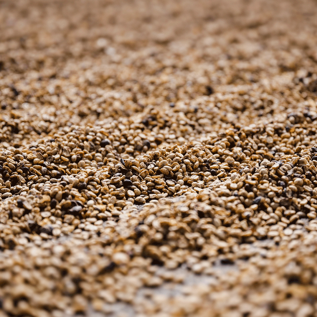 「徳広熱帯作物研究所」の協力のもと、精製発酵に取り組んだ実験的な豆。 一般的に除去したコーヒー殻は、肥料にするか、ほの甘いお茶カスカラティーとして飲用されるのですが、今回は除去されたコーヒー殻もろとも、薄皮のついた生豆と酵母と一緒にタンクで150時間発酵させ、甘い香りと風味を引き出しました。