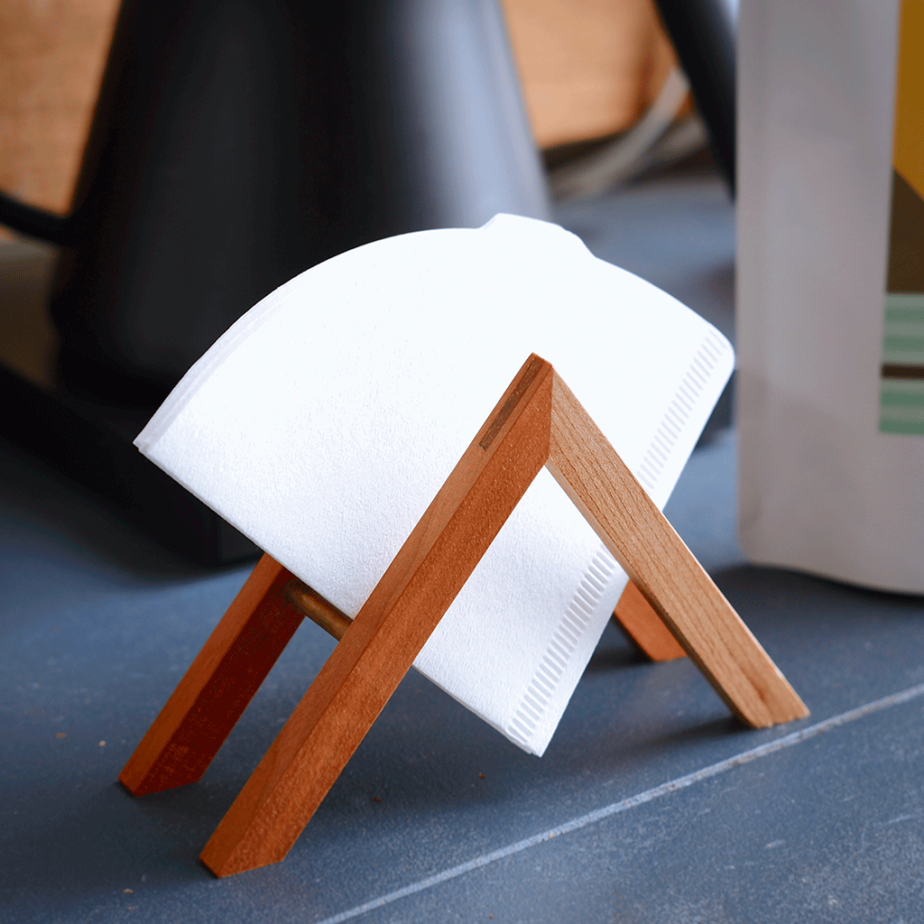 屋久島の南部、平内集落で、木製の家具や日用雑貨を製作する木工作家が、家具の端材で作ったコーヒーフィルターホルダー。長く使うほどに風合いが増す、暮らしに寄り添う道具です。